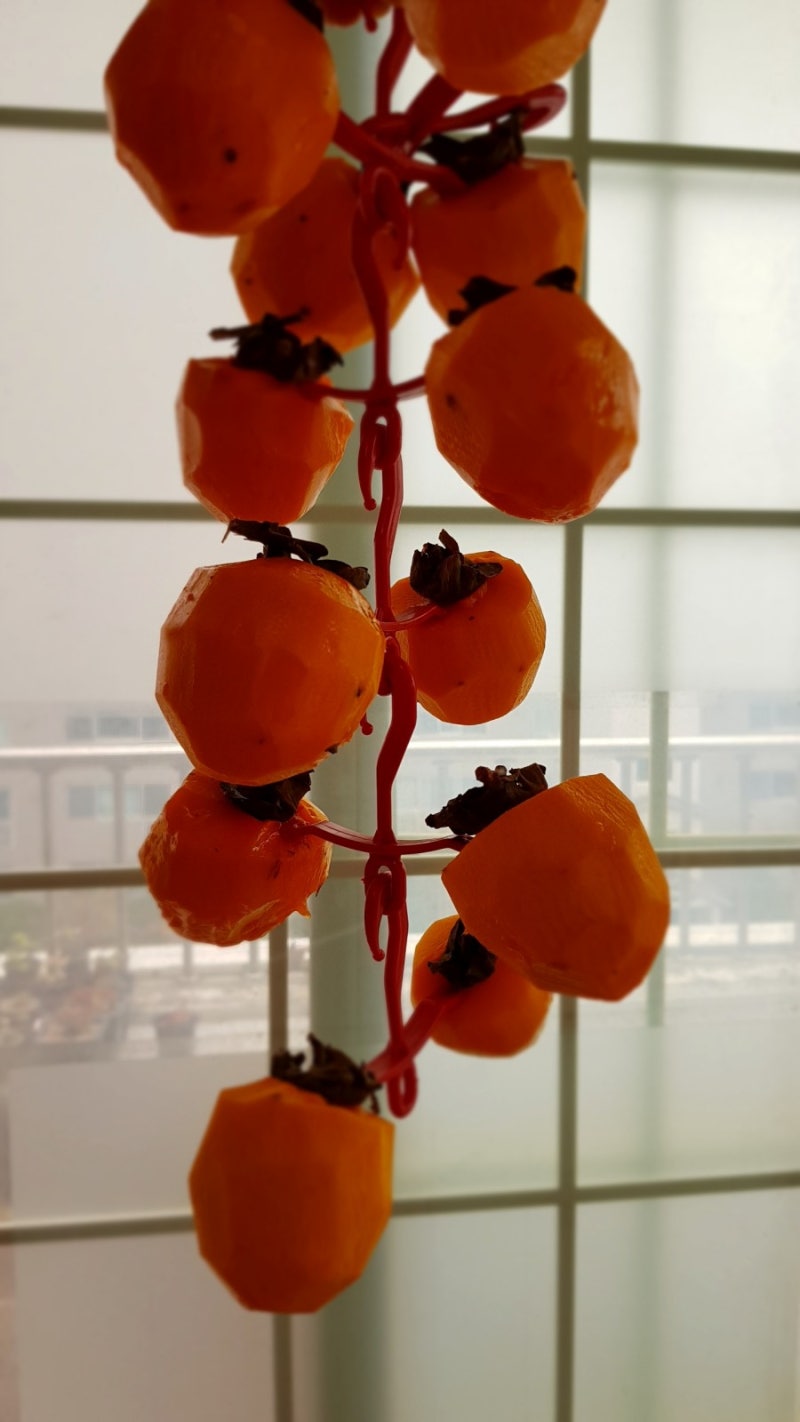 보름 정도 말린 싸리재마을의 대봉감이 아주 맛있는 반곶감이 되었습니다.그동안 저희 앞마당 데크에서 파라솔로 가려져서 말렸는데 다행히 2주 동안 미세먼지가 많은 날이 없어서 너무 잘 말렸습니다.