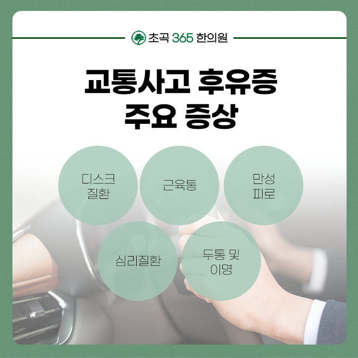 교통사고 후 반드시 의사의 진찰을 받아야 하는 이유는 통증은 사고 후 2~3일, 체내 혈액 생성 후 최대 수개월까지 나타날 수 있기 때문입니다. 교통사고 후유증의 특성상 시간이 지날수록 손상이 누적되고 통증이 심해지기 때문에 골든타임을 놓치지 않고 바로잡는 것이 바람직하다.